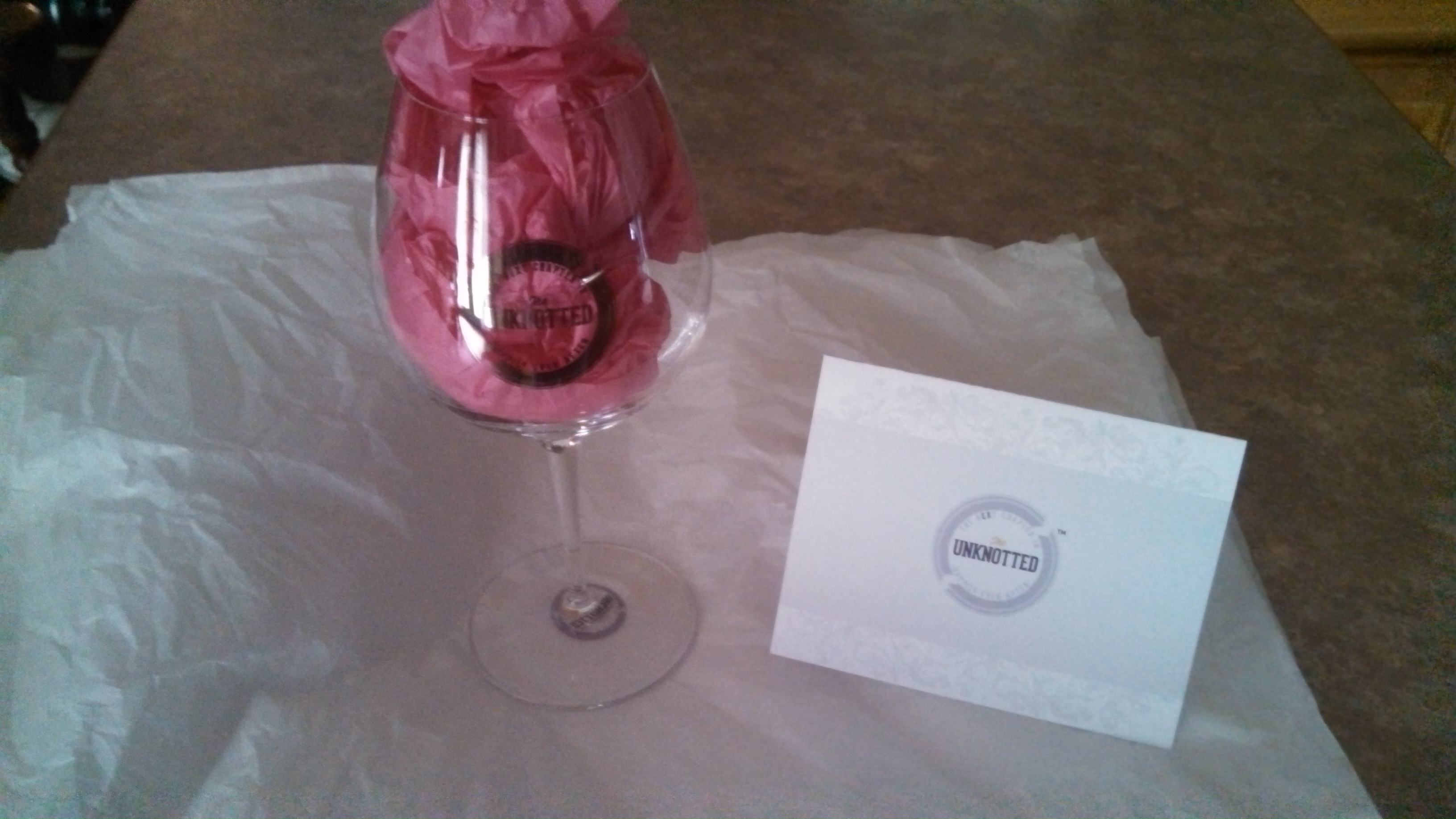 First off let me say this wine glass is the best wine glass I have ever seen, after receiving the Unknotted Wine Glass I was at first very impressed with the quality, First rate, No Blemish could I find. I tapped on the rim and got a very pure ring that lasted for several seconds, class act for a wine glass. It is a very balanced piece of work, handles great when drinking from it, very stable when sitting on a table, The quality marks are very nice as they give a reference point to fill to, Congratulations on a very fine made wine glass.